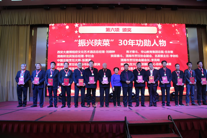3月11日上午,由渭南市商務(wù)局、市民政局指導(dǎo),渭南市烹飪協(xié)會主辦,華山教育集團(tuán)支持的“揚(yáng)帆起航 再鑄輝煌”中國陜菜之都首批老字號餐飲美食名店授牌儀式暨振興陜菜三十年表彰大會召開。會上,華山教育集團(tuán)黨委書記、董事長任永敏被授予“振興陜菜”30年功勛人物榮譽(yù)稱號,集團(tuán)招生就業(yè)部副部長、渭南西北新世紀(jì)職業(yè)中等專業(yè)學(xué)校校長馮昕被授予“振興陜菜”30年領(lǐng)軍人物,渭南新東方烹飪學(xué)校被評為“中國陜菜之都金牌宴席”獎,該校張佐國大師被評為“振興陜菜”30年貢獻(xiàn)人物,李少峰老師被評為“振興陜菜”30年最佳青年廚師。p0v陜西華山教育集團(tuán)