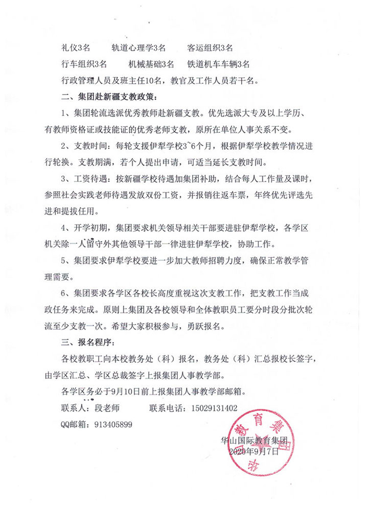 為了支援集團(tuán)新疆伊犁學(xué)校發(fā)展,華山國(guó)際教育集團(tuán)在全集團(tuán)發(fā)出號(hào)召支援新疆學(xué)校。9月9日,華山國(guó)際教育集團(tuán)召開第一批援疆教師動(dòng)員大會(huì)。Okb陜西華山教育集團(tuán)