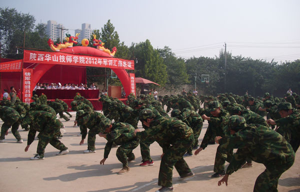 參加匯報(bào)表演的十個(gè)連隊(duì),進(jìn)行了匯報(bào)表演,對(duì)在軍訓(xùn)表演中獲得先進(jìn)連隊(duì)和個(gè)人給予獎(jiǎng)勵(lì), 2000多名新生精彩的表演,飽滿的精神狀態(tài),嚴(yán)明的會(huì)議紀(jì)律,給與會(huì)同志留下了深刻的印象,受到了到會(huì)領(lǐng)導(dǎo)的高度評(píng)價(jià)。晚上舉行了全體師生自編自演的文藝晚會(huì)。這次軍訓(xùn)表演,必將給今后的教育教學(xué)和學(xué)生管理工作起到新的促進(jìn)作用,必將為集團(tuán)的發(fā)展,美好燦爛的明天奠定有力的基礎(chǔ)。28w陜西華山教育集團(tuán)